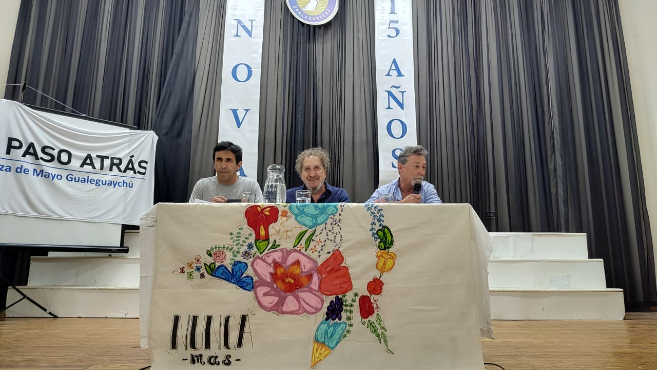 El docente, escritor e investigador principal del CONICET, Carlos Skliar, se presentó este jueves en el salón de actos de la Escuela ENOVA, en una actividad organizada por Madres de Plaza de Mayo Gualeguaychú en el marco de los 50 años del último golpe de Estado cívico-militar.