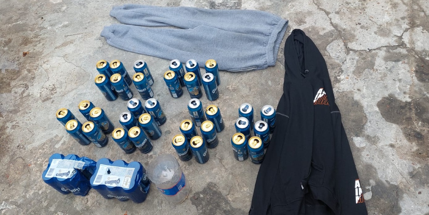 Como resultado, se secuestraron cerca de 50 latas de cerveza, entre llenas y vacías, , prendas de vestir de interés para la causa y una botella plástica cortada tipo vaso.